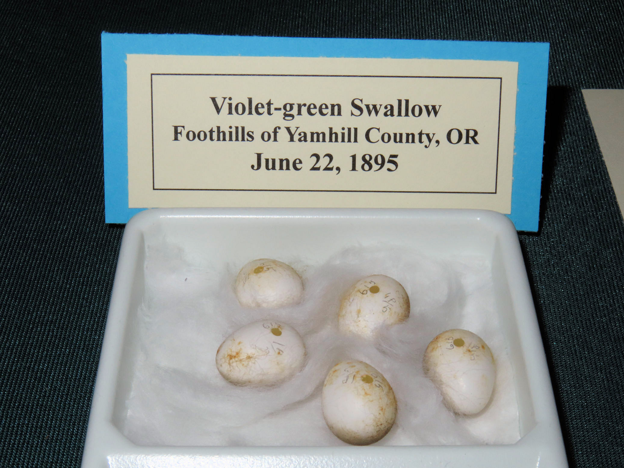 Continue reading →Violet-green Swallow eggs collected for Arthur Pope by George White in the foothills of Yamhill County, OR on June 22, 1895